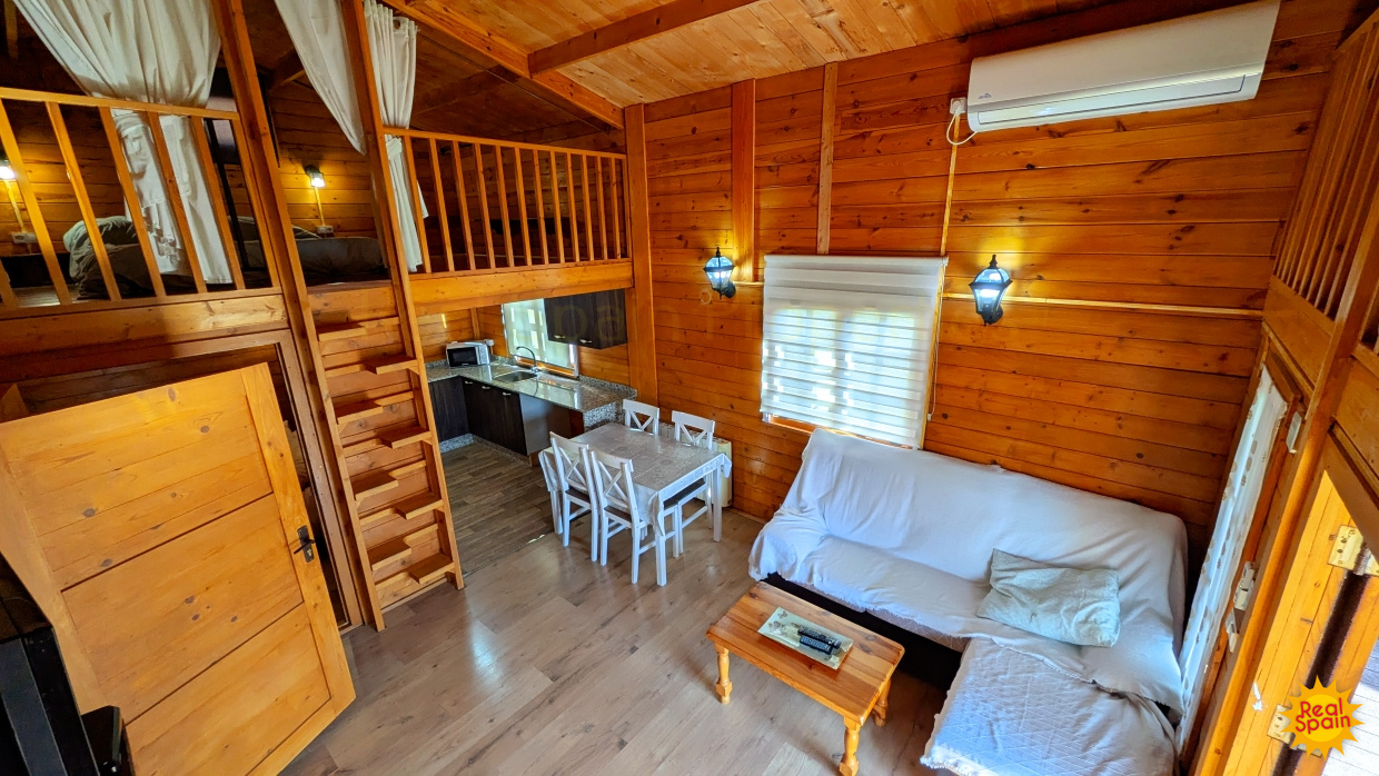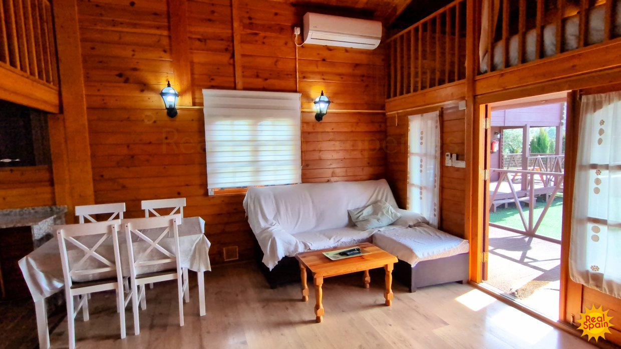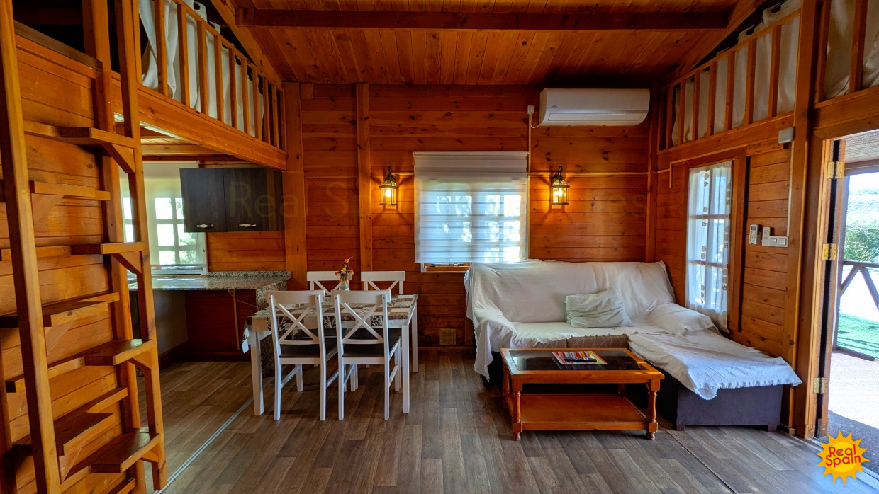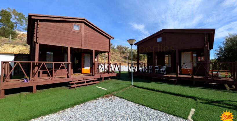 In addition, there are two timber-built guest houses of identical design. Each offers a welcoming open-plan sitting, kitchen and dining space, a main bedroom, a shower room, and two loft-style bedrooms, making them perfect for families or small groups.